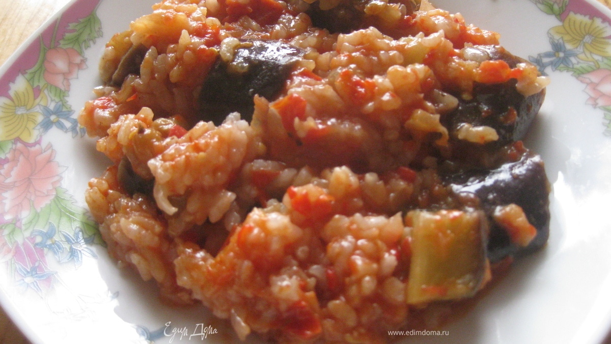 - ПодготовкаРежем баклажаны кубиками по 2 см. солим и оставляем на десять минут, после чего промываем водой. Режем лук кубиками и жарим вместе с баклажанами на масле. Через 5 мин. добавляем рис.