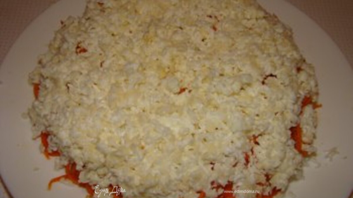 - ПодготовкаОтвариваем курицу (филе) охлаждаем и нарезаем кубиками, сверху корейская морковка, и лук нарезанный тонкими полукольцами каждый слой мажем майонезом и засыпаем сыром с верху украшаем зеленью