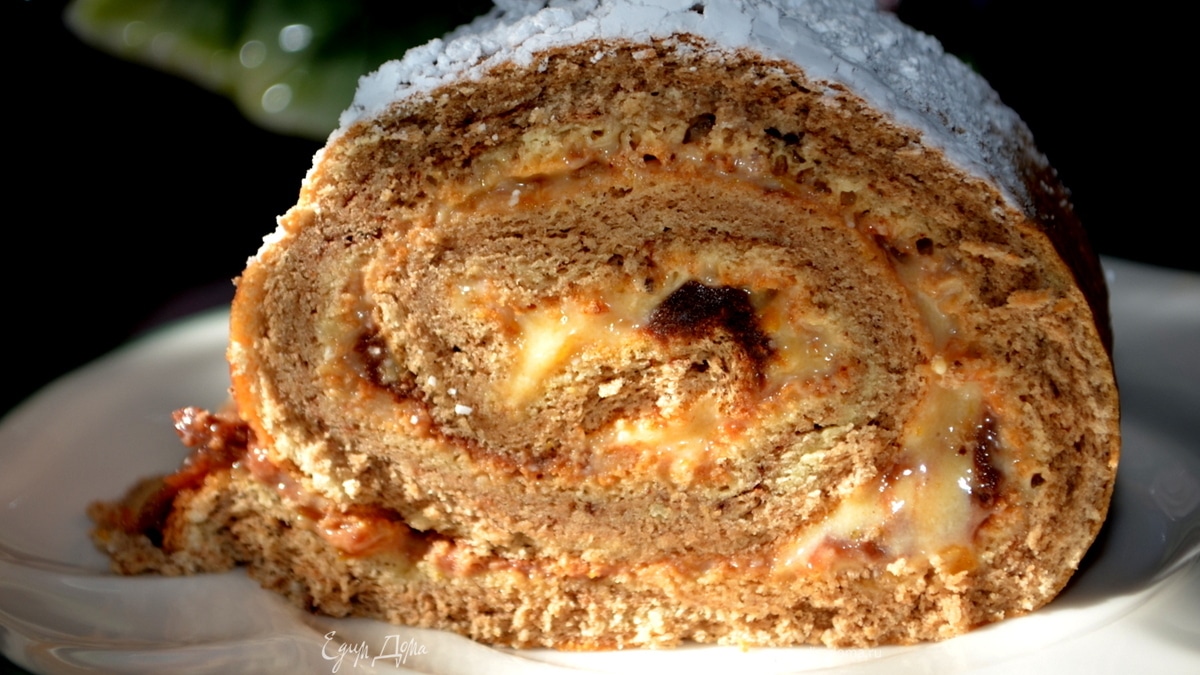 Бисквитный рулет с творожным и фруктовым кремом "назад в ссср"