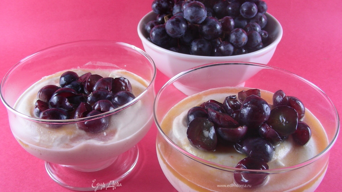 Перед подачей выкладываем на мусс маринованный виноград и немного поливаем сиропом. Приятного аппетита))
