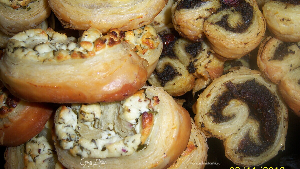 СЛОЕНЫЕ УШКИ С ТАПЕНАДОМ И КОЗЬИМ СЫРОМ