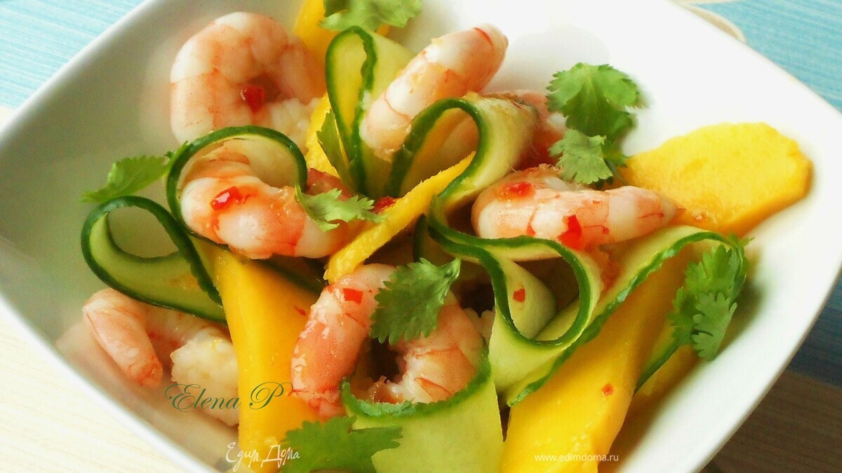 - Шаг 3Соединить манго, креветки и огурец, встряхнуть. Полить соусом и соком лайма. (Я соединяю их вместе - гомогенной смесью равномернее заправлять).