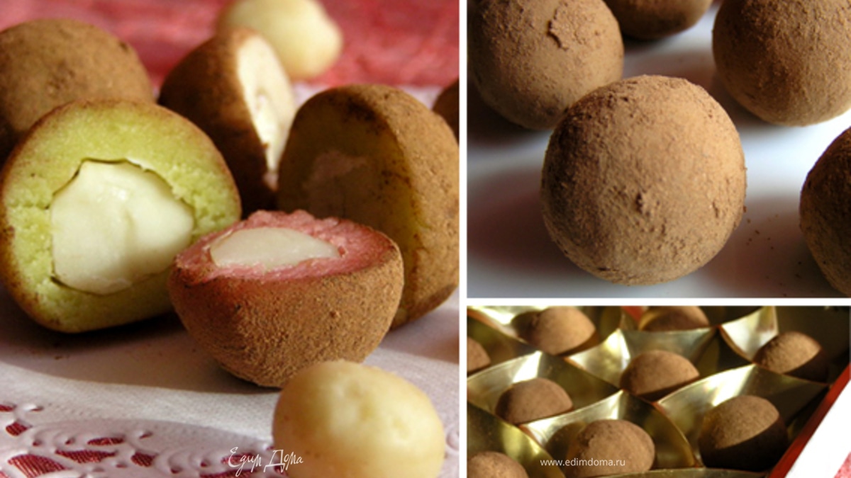 Вкусные марципановые конфеты с экзотическим орехом макадамия. Хотя для начинки можно использовать любые орехи или даже сухофрукты. Можно в пост ;)