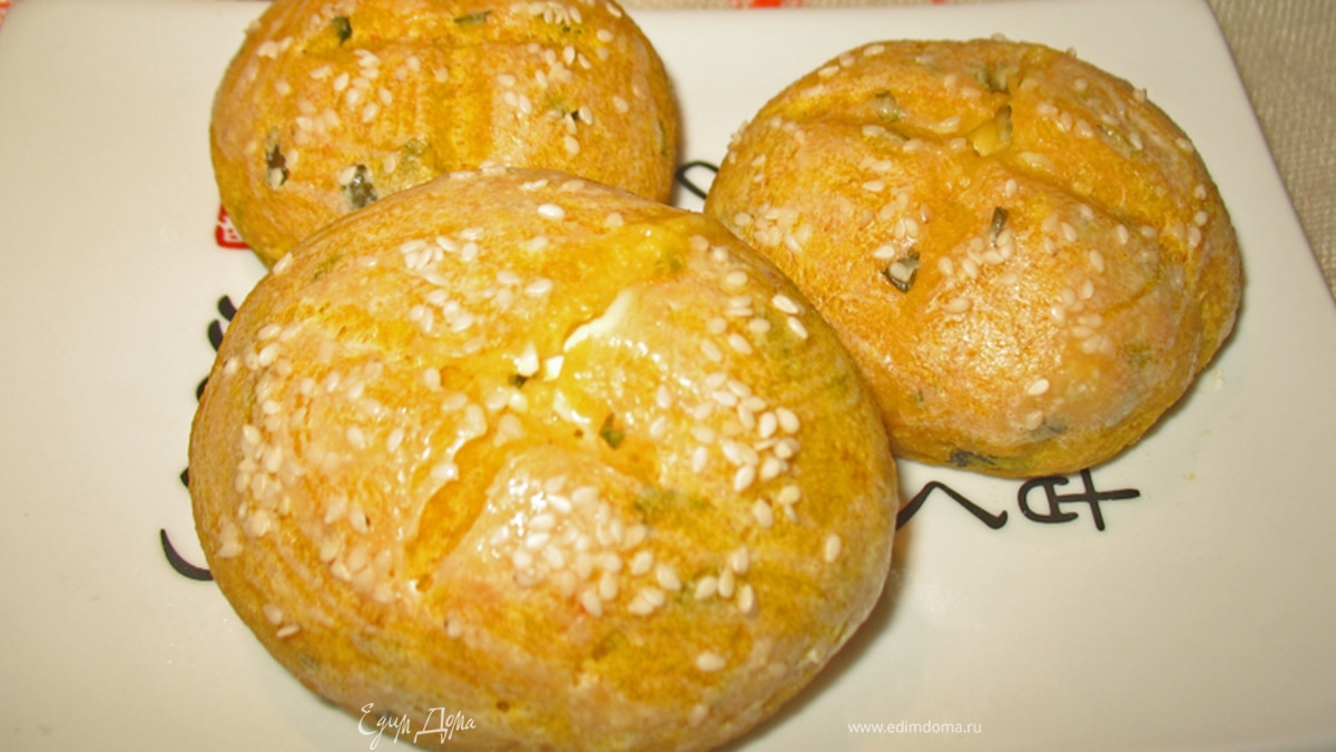 Смазать верхушку каждой булочки сметаной и посыпать кунжутом (или тмином). Выпекать в заранее разогретой до 200 градусов духовке минут 20-25. - Шаг 7