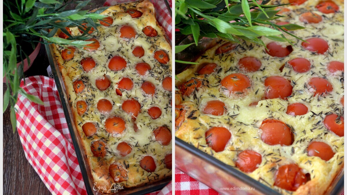 вылить в нее тесто и разложить сверху томаты - Шаг 8