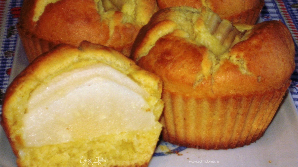 Выложить тесто в формочки ,сверху положить кусочки груши и выпекать в разогретой до 180°С духовке 25 минут.Остудить на решётке.Приятного аппетита:)
