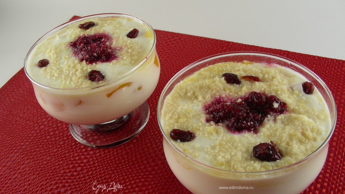 Йогуртово-творожный десерт с клюквой, персиками и миндалем