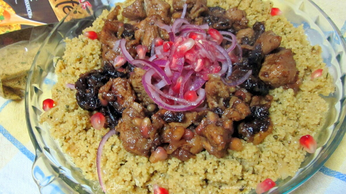 Индейка с черносливом, гранатом и ароматным кускусом
