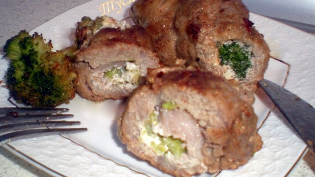 Мясные рулетики с брынзой, брокколи и кедровыми орешками