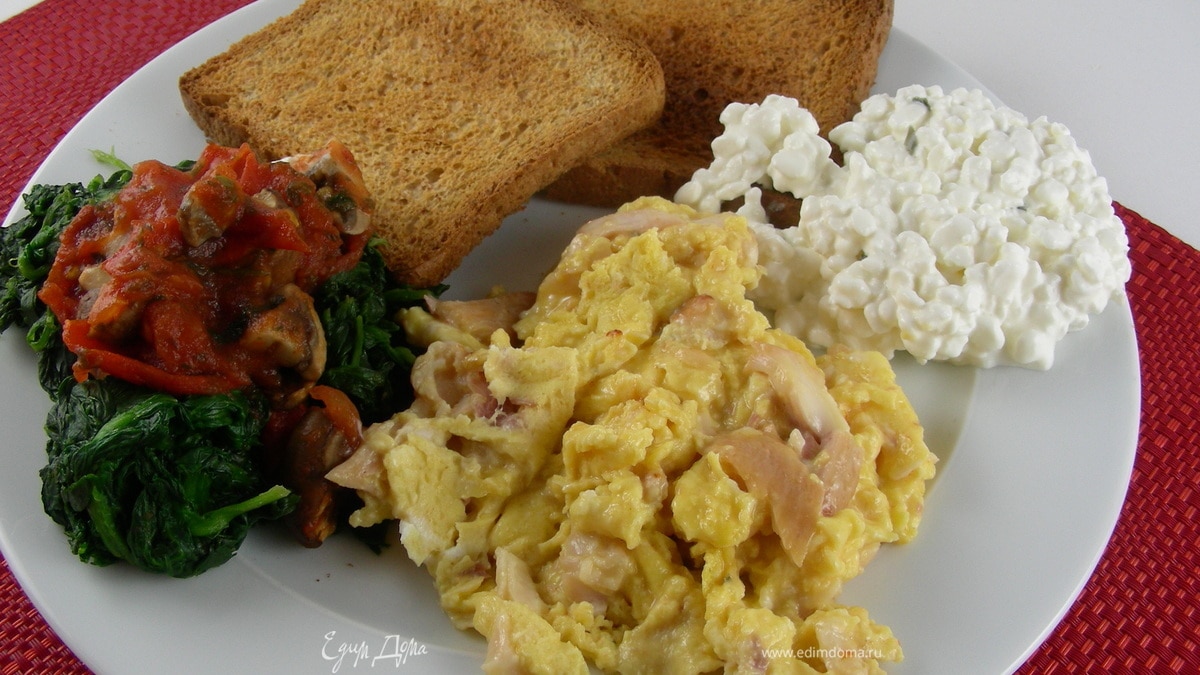 Хотела бы показать Вам простой и быстрый вариант легкого завтрака, обеда или ужина. Недавно уже готовила яичницу-болтунью, этот рецепт из той же серии, что называется. Здесь мне нравится простота и быстрота приготовления в сочетании с хорошей питательной ценностью и полезностью. Много белков, овощи и относительно диетично)) вот)) Попробуйте)))