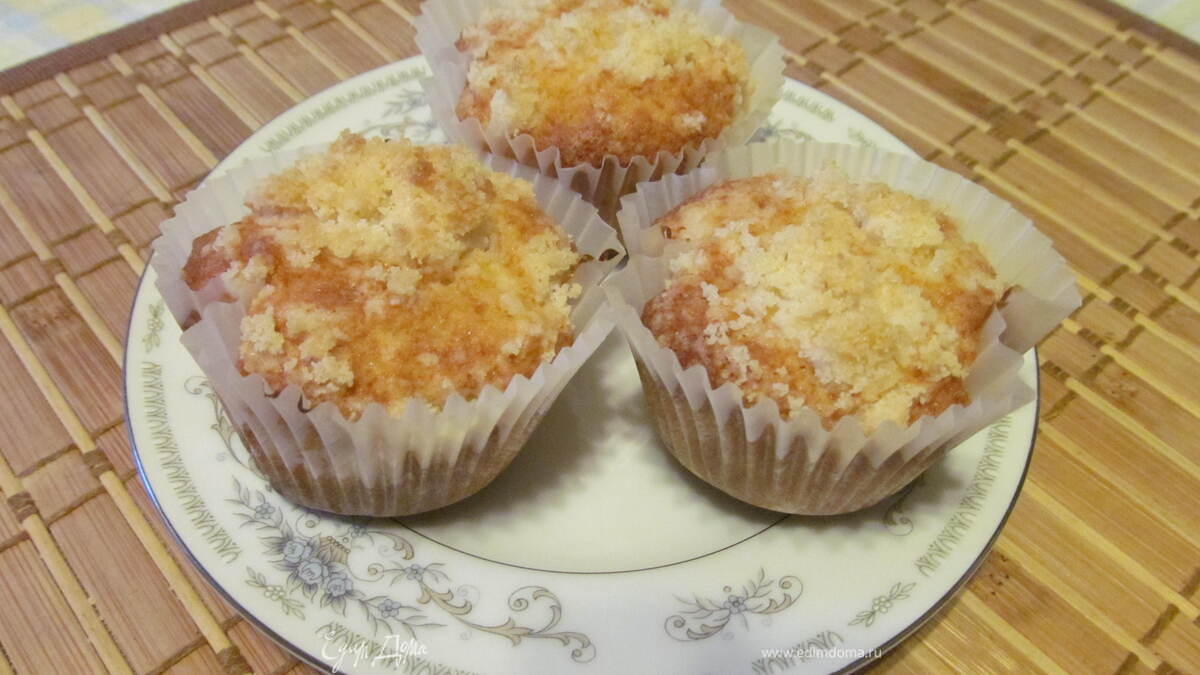 - Шаг 2Теперь посыпем сверху уже приготовленым штрейзелем, примерно, по 1 чайной ложке на каждый кекс, но использовать нужно весь штрейзель. Теперь ставим в разогретую духовку на 30 минут, затем вынимаем, даем остыть минут 10, и можно снимать пробу.