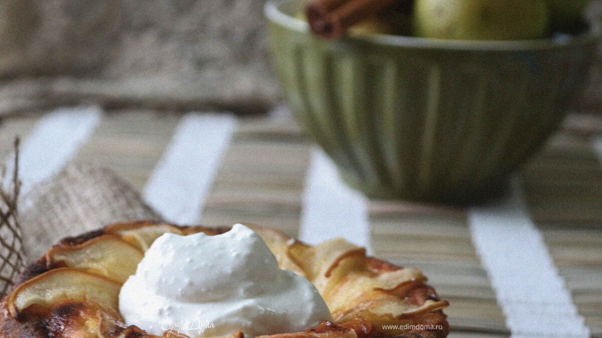 Творожный мини-пирог с грушей, лавандовым медом и сметанным кремом