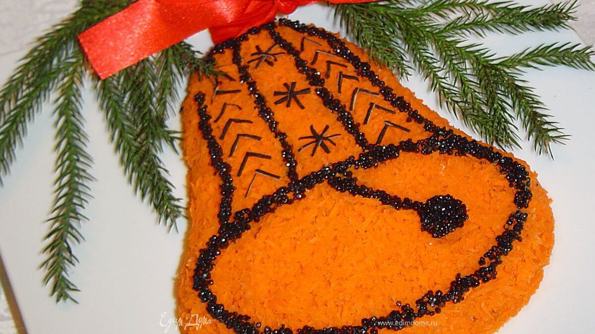 Морковь очищаем и натираем на мелкой терке, а затем покрываем ею наш "колокольчик".