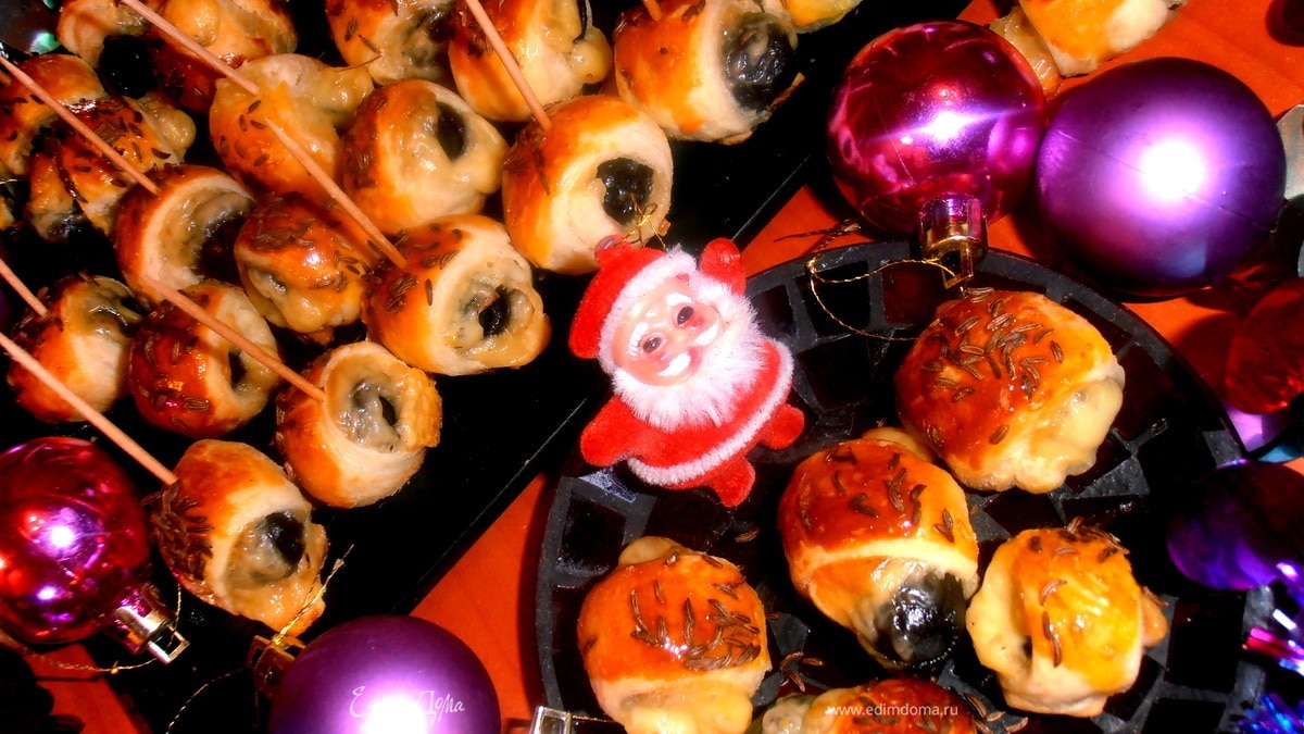 Когда-то увидела такой рецепт в местном журнале и сразу побежала на кухню повторить... Рецепт такой простой, что можно не записывать! Минимум ингредиентов + 10минут в духовке=масса удовольствия))) Такая фуршетная закуска подходит к любым напиткам, в том числе "дружит" с кофе... Поздравляю всю Команду ЕД с наступающими праздниками ,прошу к столу!