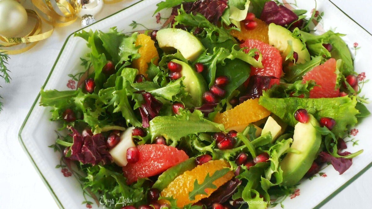 Салаты порвать руками, фрукты очистить, нарезать авокадо и грушу ломтиками, цитрусовые сегментами и без перепонок. Перемешать всё в салатнике или выложить на индивидуальные тарелки. - Шаг 1