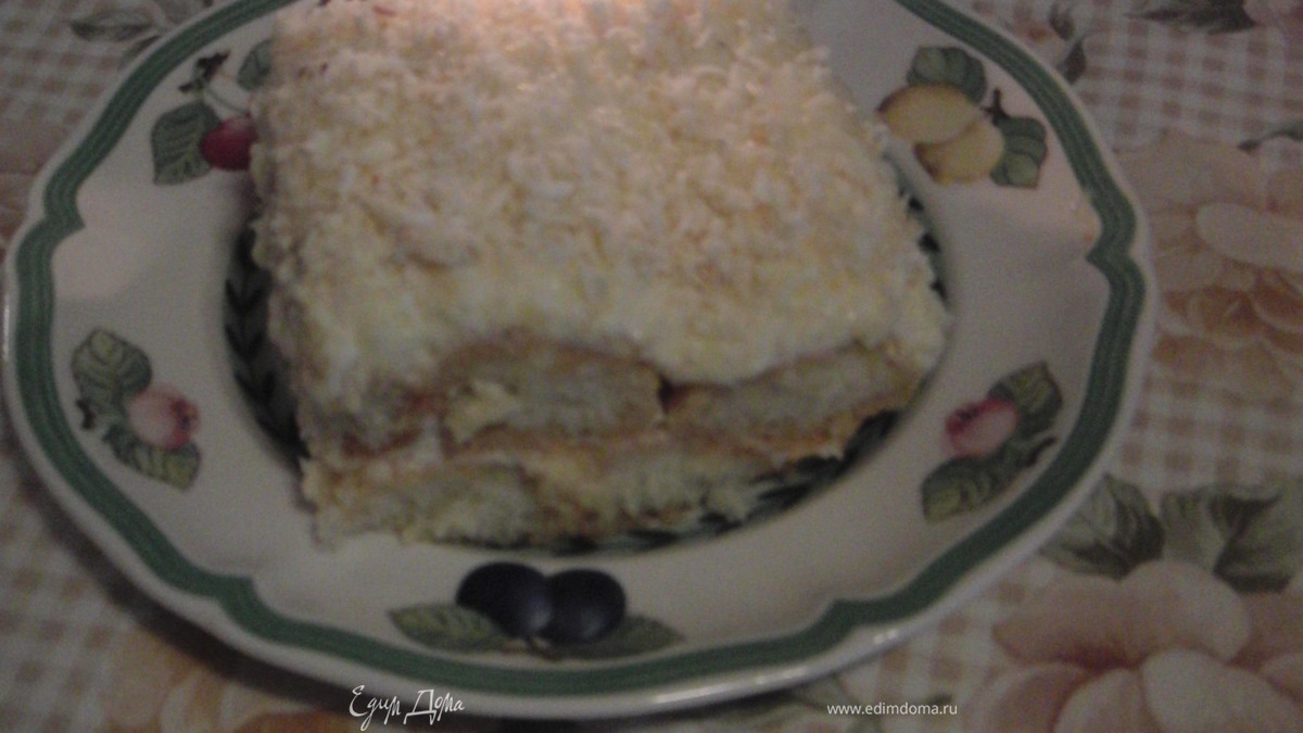 Десерт украсить тертым белым шоколадом(можно с орешками)и поставить на ночь в холодильник.
