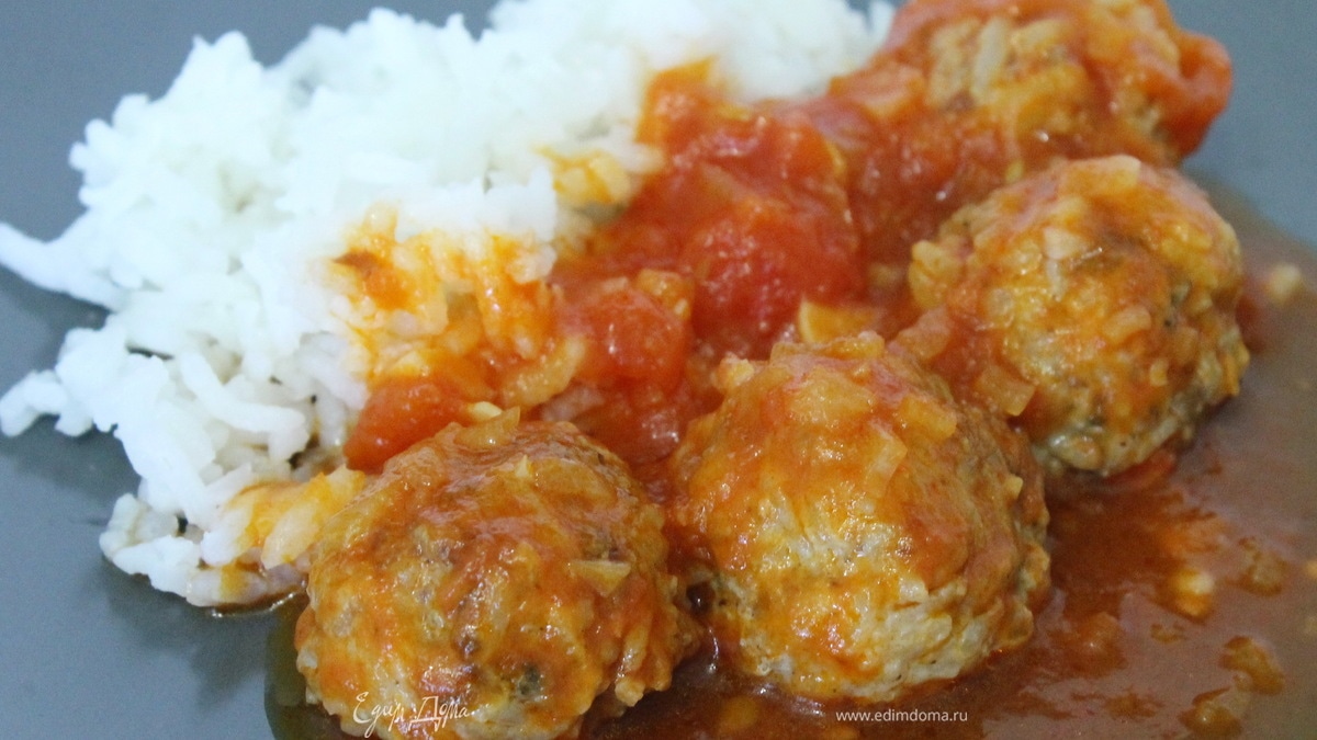 Готовые тефтели выложить в соус и потушить 5 мин. Подавать горячими с зеленью.
