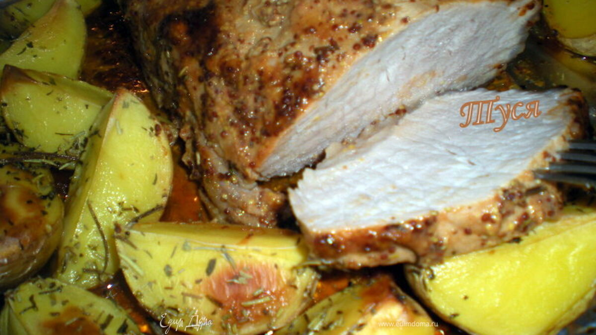 Запеченная буженина в глазури с картошкой по-деревенски (МК по запеканию)