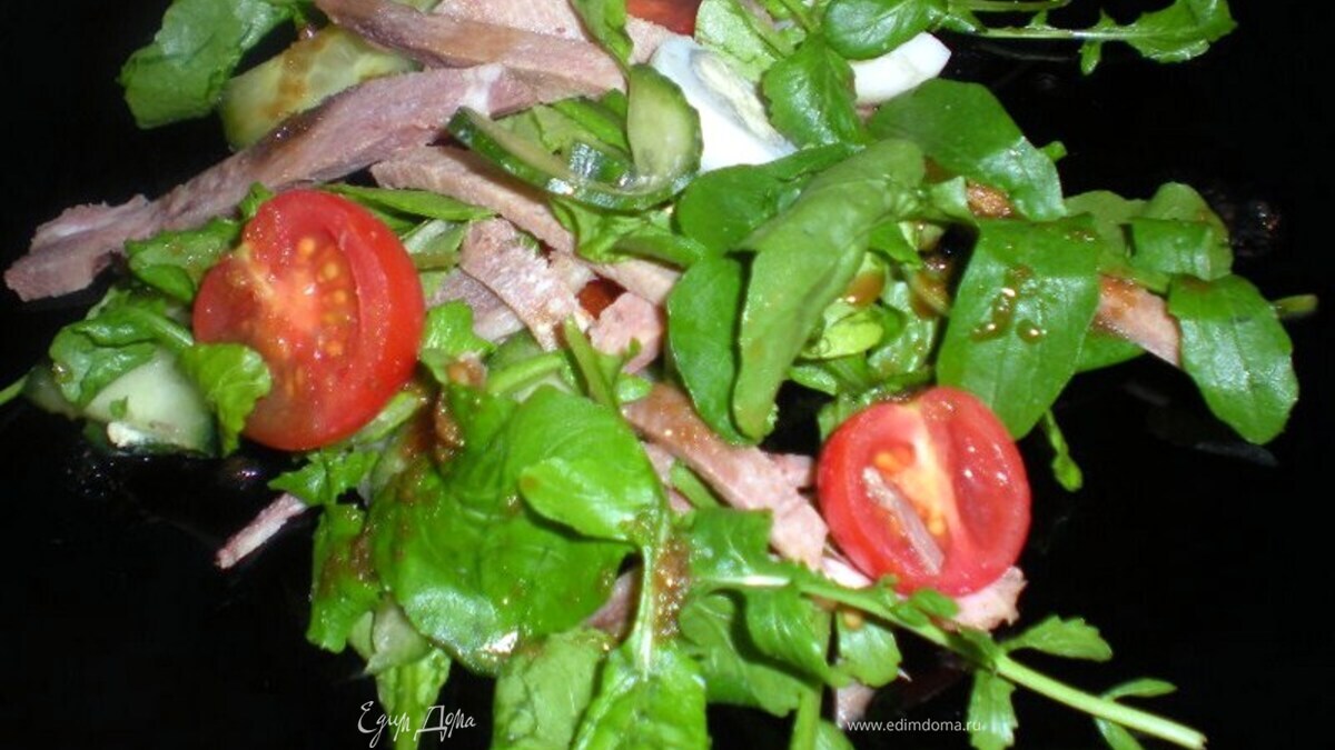 Салат с телячьим языком и руколой под азиатским соусом