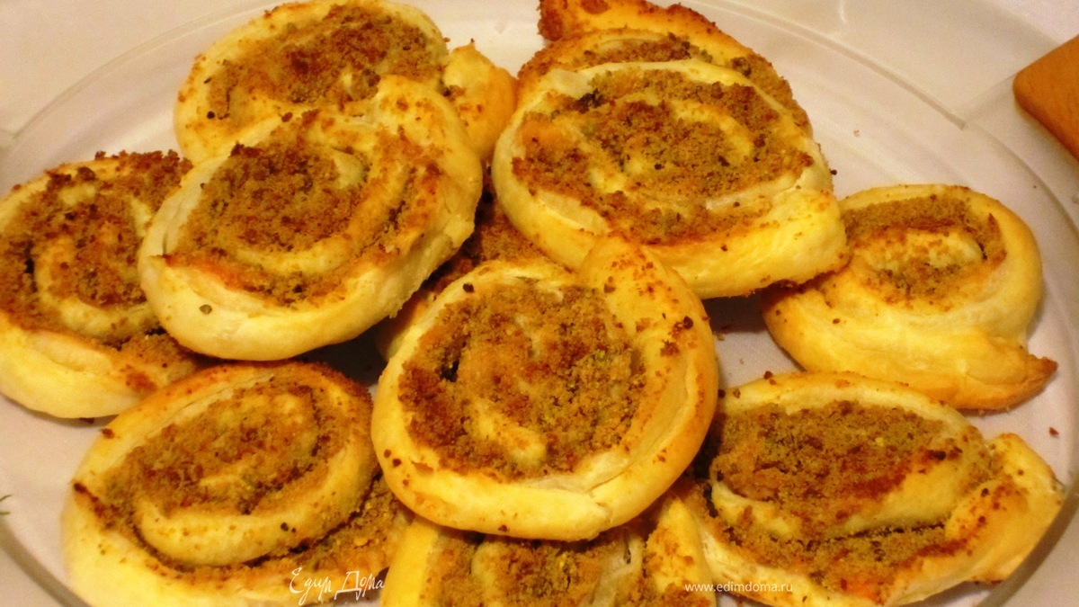 Слоеные улитки с лососем и фисташками