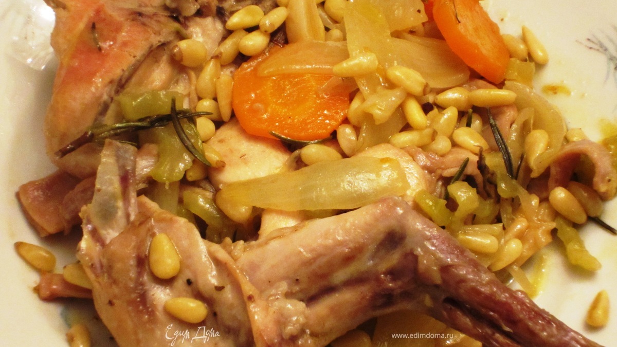 Кролик, тушеный с кедровыми орешками