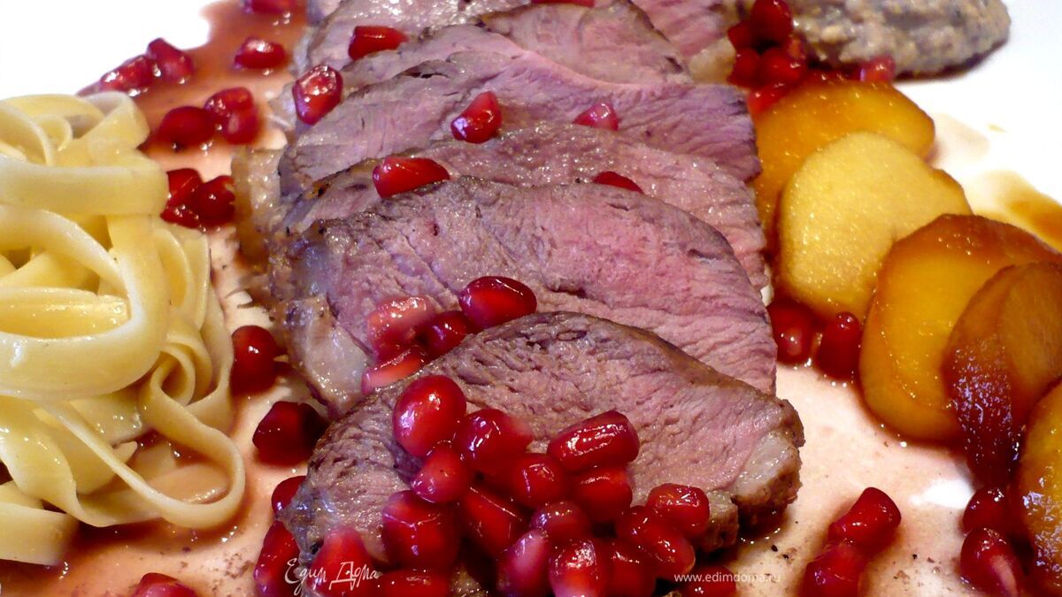Утиная грудка c гранатом, яблоками и каштановым пюре