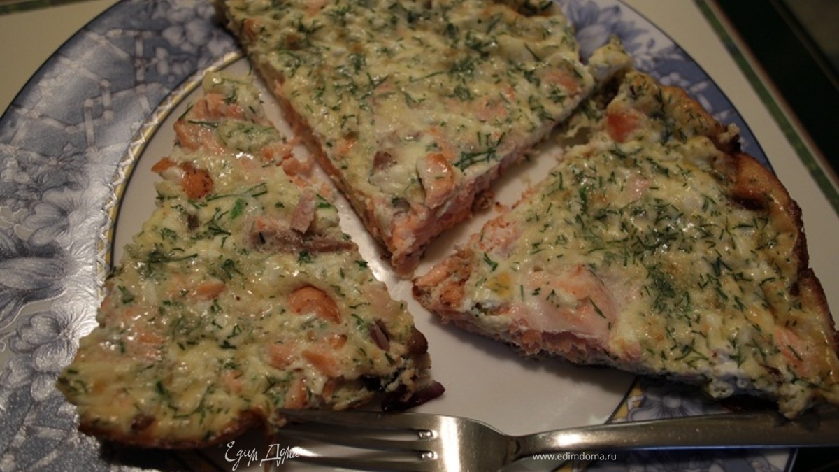 Фриттата с семгой, красным луком и сливочным сыром