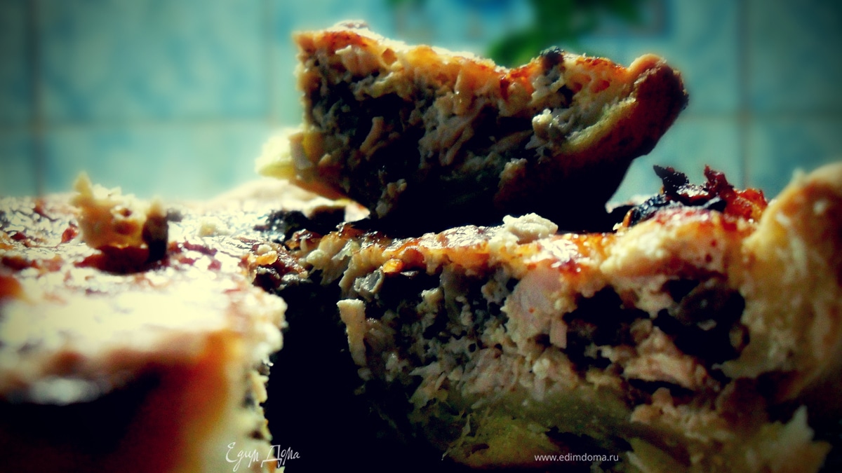 Измельчяем грибы и курицу Грибы обжариваем с луком. Затем добавляем курицу и обжариваем до золотистого цвета - Шаг 8