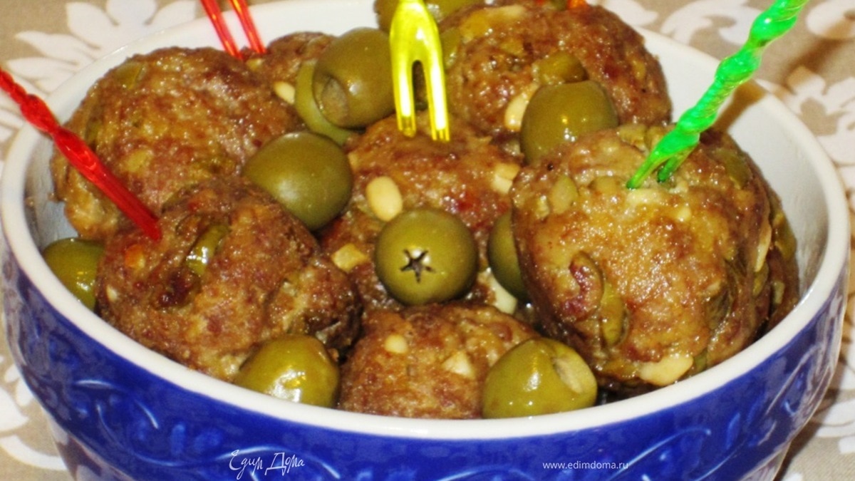 Мелко нарезать оливки, орехи, чеснок и поместить в глубокую миску.Добавить фарш,яйцо,панировочные сухари,соль,перец и хорошо перемешать.