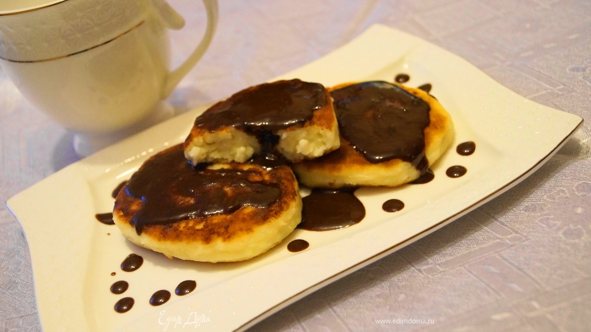 Сырники подавать с шоколадным соусом. Приятного аппетита!!!