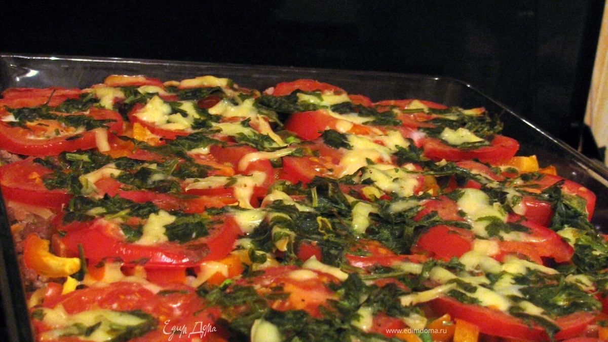 Нарезаем перчик и помидоры и выкладываем 3й и 4й слой соответственно. - Шаг 3