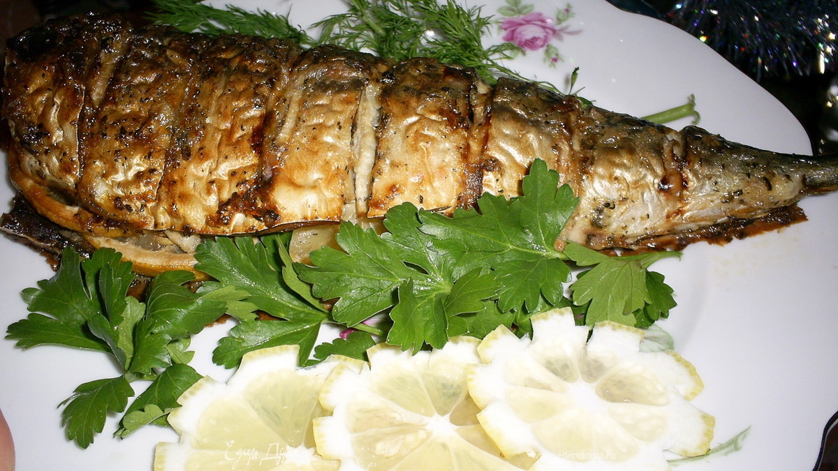 Ароматная запеченная скумбрия с луком
