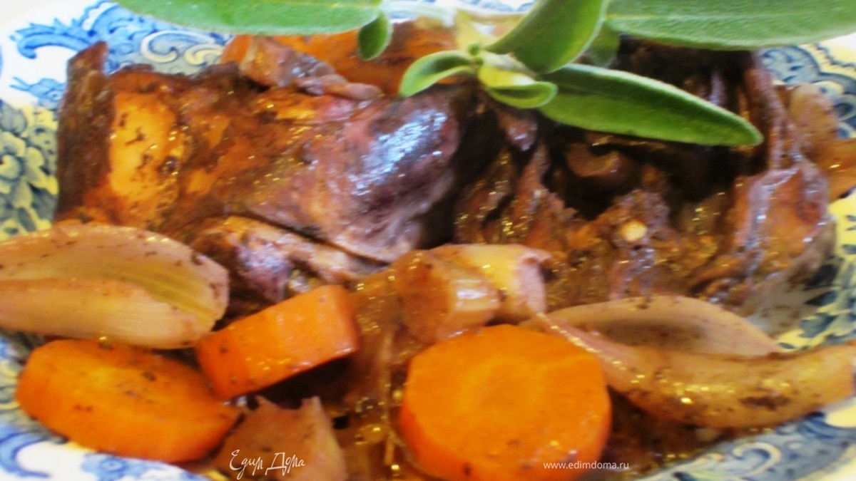 Кролик, маринованный в красном вине, с овощами