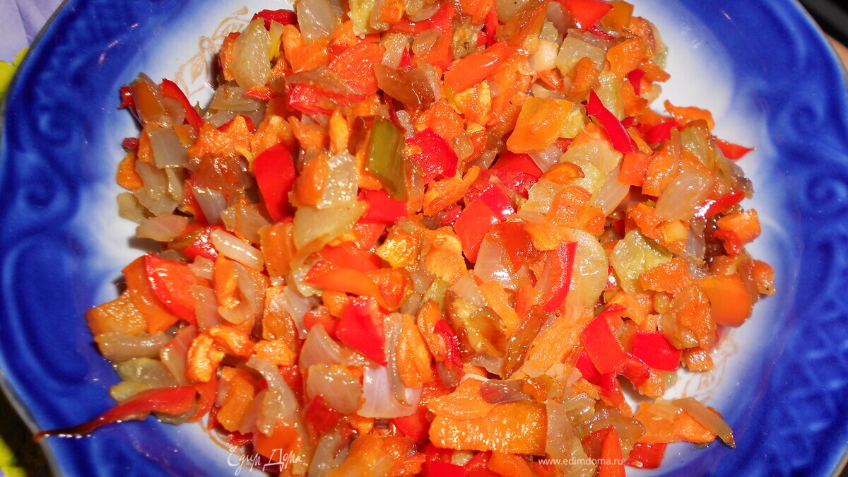 порезали...обжарили (когда порции большие, то стараюсь обжаривать все по отдельности )...перемешали...добавили болгарский перец ( у меня замороженный...поэтому не сфоткала ) - Шаг 2