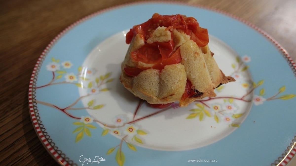 На дно силиконовых формочек для маффинов выложить часть нарезанных помидоров и перца, присыпать щепоткой сахара и разложить тесто. Сверху выложить оставшиеся помидоры и перец. - Шаг 9