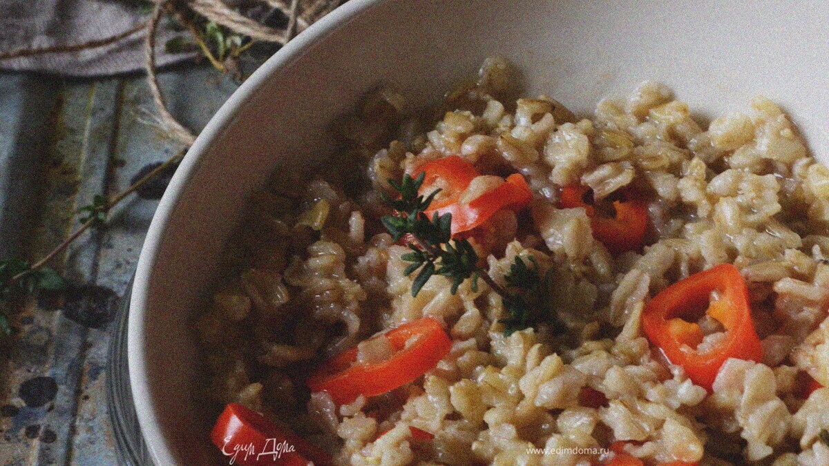 Овсяная каша на курином бульоне со сладким перцем и тимьяном