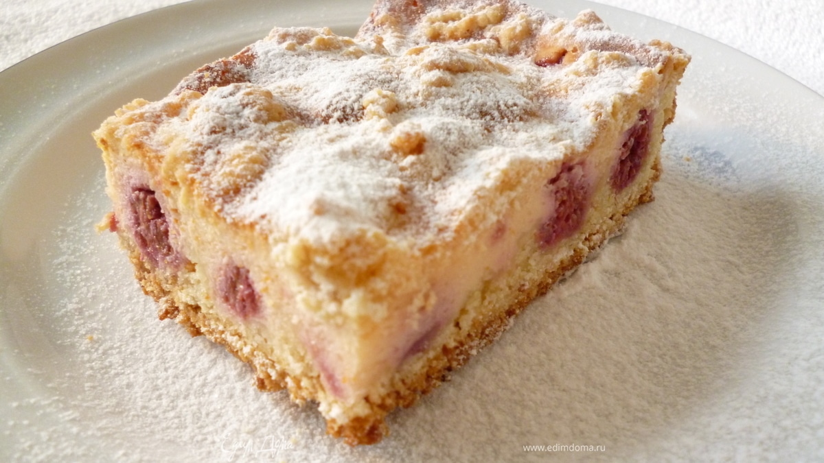Творожный пирог с малиной