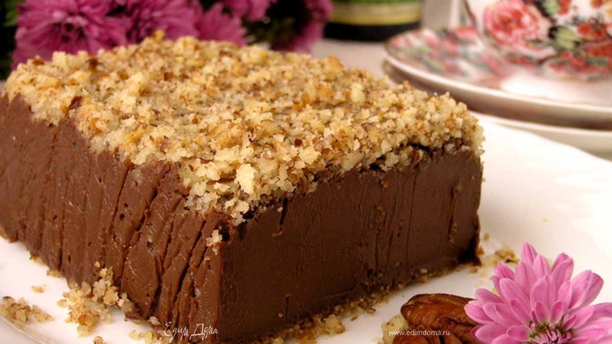 Готовый шоколадный десерт аккуратно вынуть из формы, убрать пленку. Нарезать на порционные кусочки и наслаждаться великолепным вкусом!