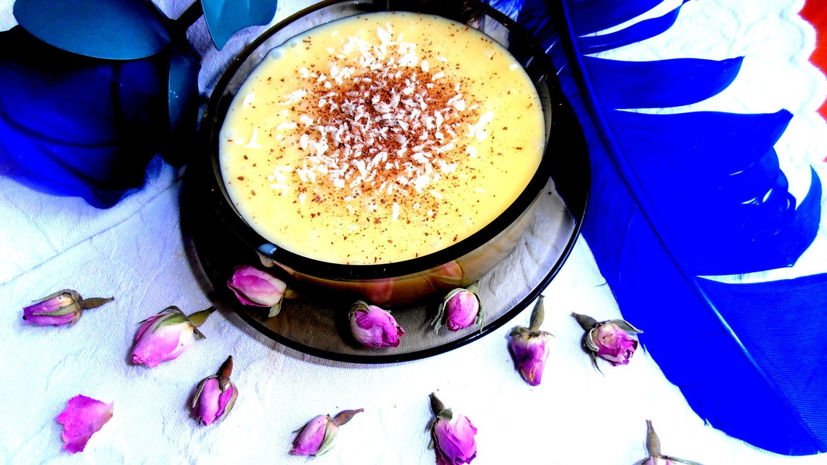 Крем должен постоять ночь в холодильнике до полного качественного состояния... Но я не удержалась и оформила сразу креманочку для вас! Сначала посыпала кокосом... - Шаг 8