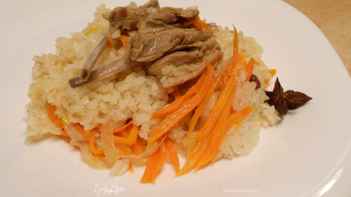 ****ВНИМАНИЕ: весь секрет состоит в том, чтобы закрыть _плотно_ казанок, оставить на медленном огне и не открывать его 30 минут! Снять с огня, не открывая, дать постоять. Подавать к столу со свежими овощами и зеленью, стараться захватить все слои, чтобы кусочки мяса оказались на рисе (так сочнее). В идеале такой плов едят руками (так делала мама в Афганистане) После подать зеленый чай. Приятного аппетита!