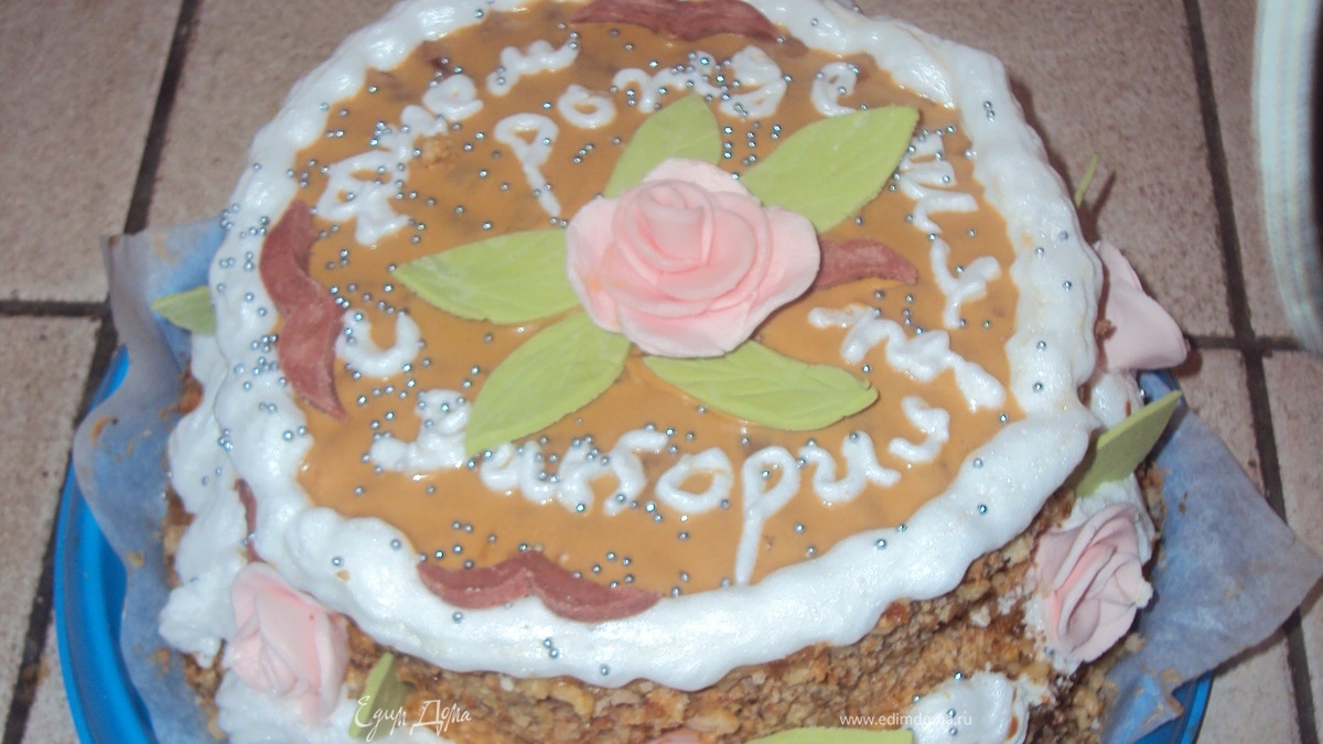 - Шаг 1Готовим крем: масло взбить до бела,добавить сгущенку и взбивать еще 5 минут .