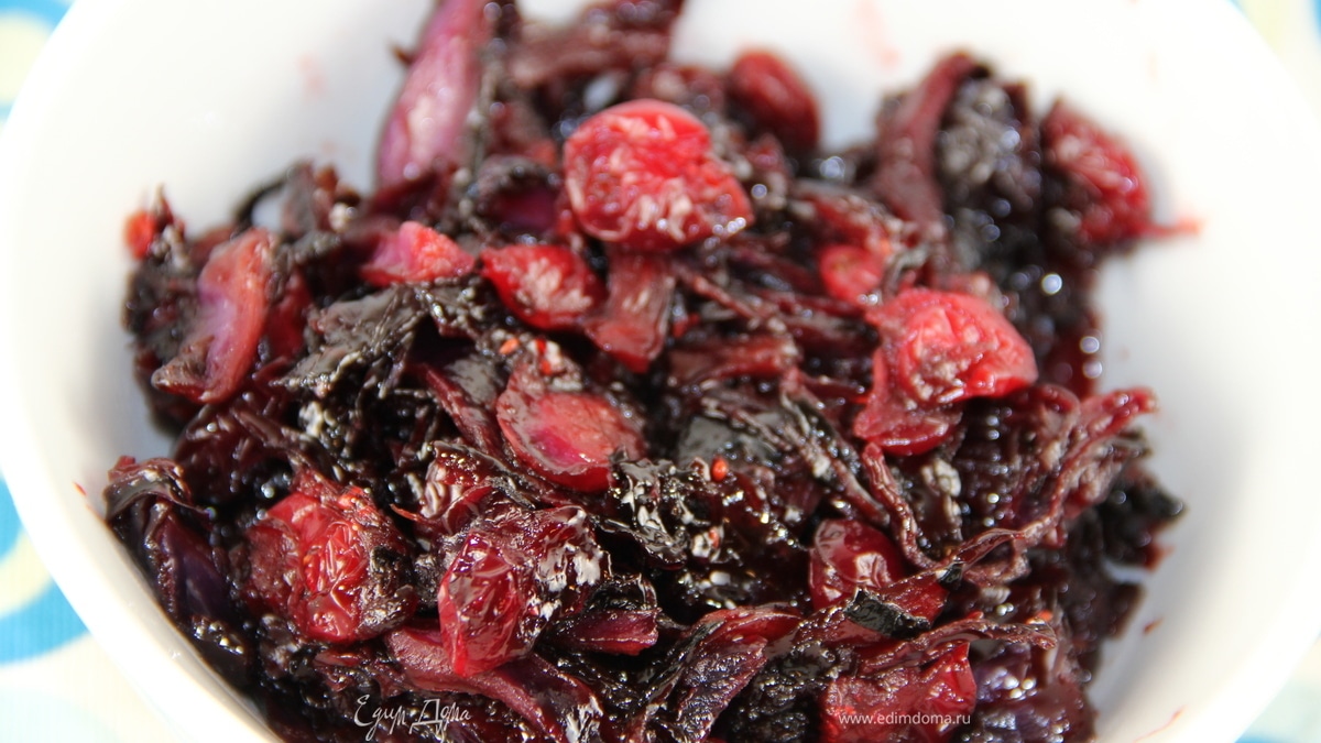 Добавляем клюкву и готовим еще 10 минут. Можно ее приготовить заранее: такая капуста хранится в холодильнике до 4 дней. Перед подачей ее надо разогреть до максимума. - Шаг 4
