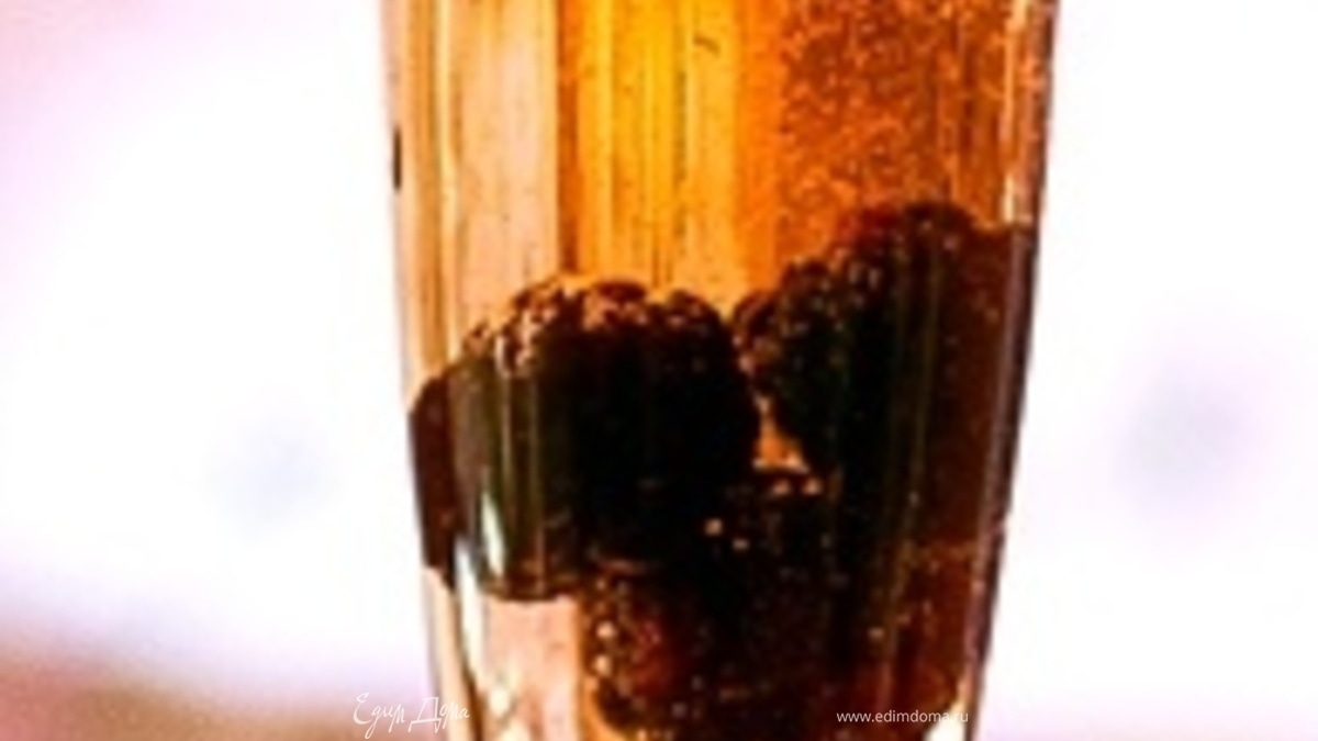 - ПодготовкаНа дно бокала Шампань флюте (200 мл) поместить ягоды свежей ежевики.