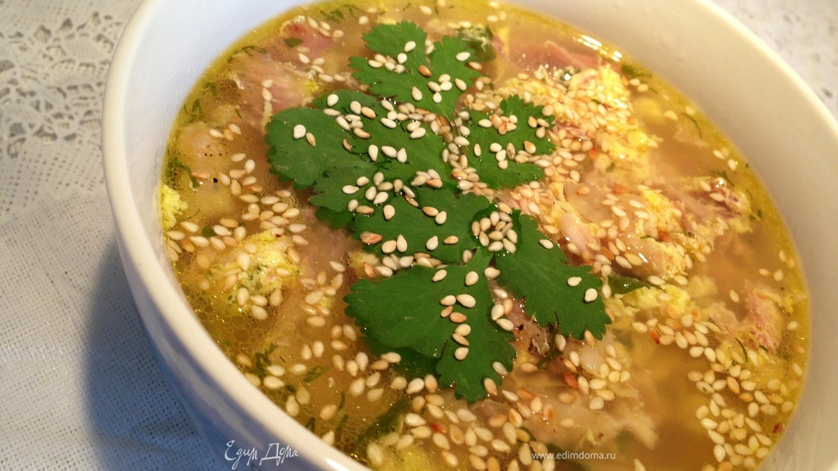 Рецепт не мой, взят из кулинарной программы "Смак", где в гостях была Татьяна Тарасова - тренер по фигурному катанию. Давно порывалась приготовить этот супчик и только сейчас дошли руки:) Супчик получился интересным по вкусу, может не совсем привычным из за отсутствия специй. Рекомендую от себя добавить в тарелку с супом немного соевого соуса и посыпать поджаренным кунжутом...