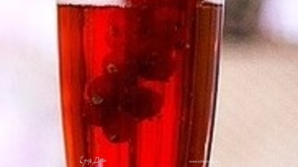 - Шаг 2На дно бокала поместить веточку свежей смородины.
