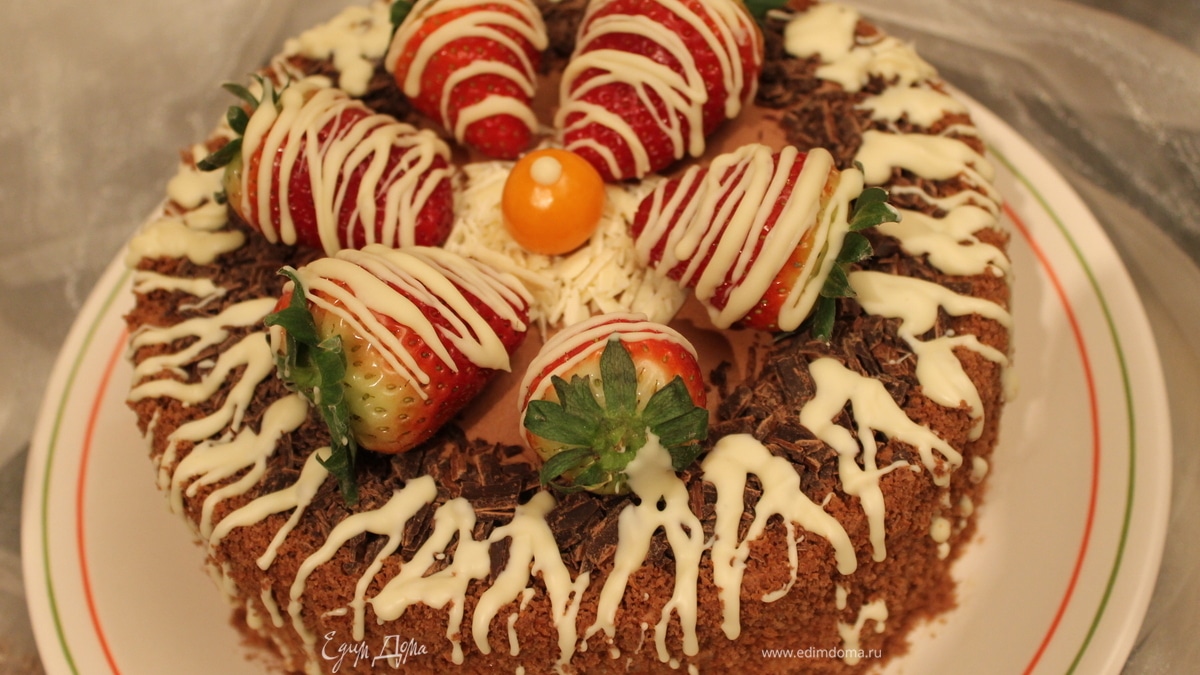 украшаем по желанию...я брала белый и темный шоколад. нарезала ножом стружку..ягоду поливала растопленым шоколадом. бока обсыпала крошкой с бисквита. - Шаг 16