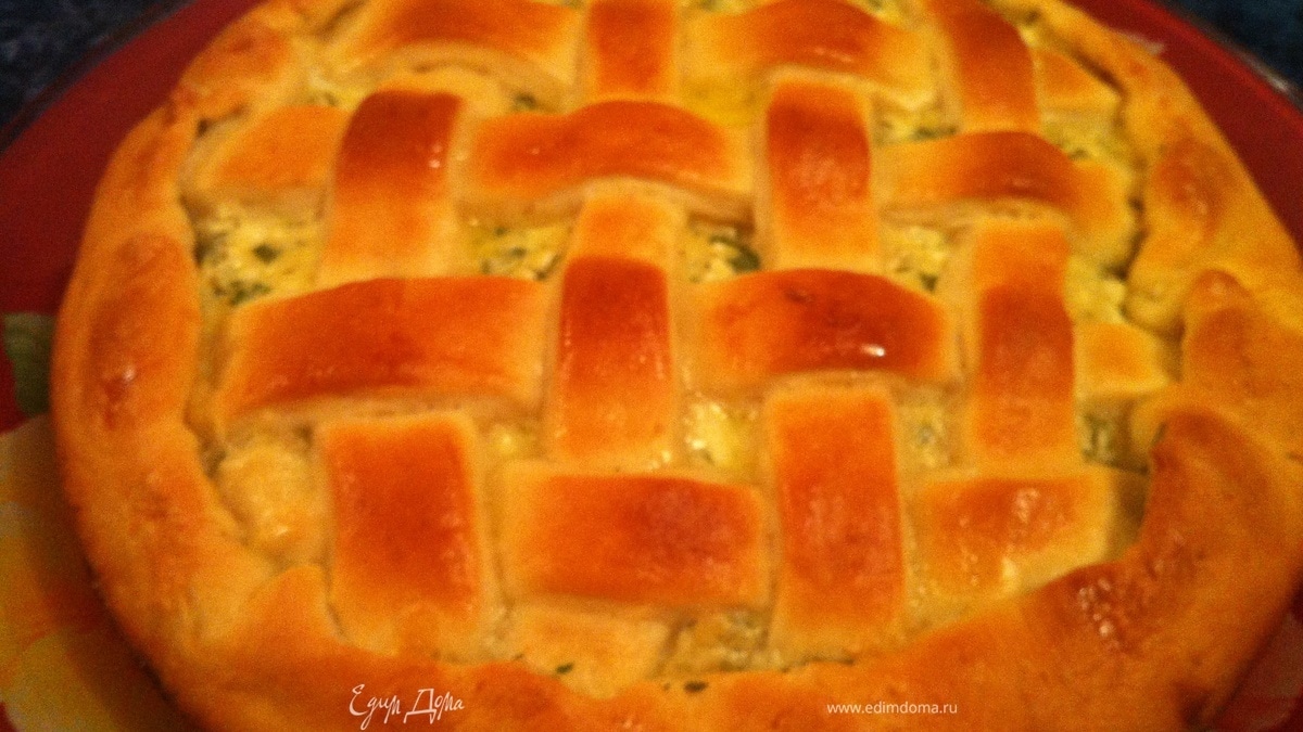 - Шаг 2оставшееся тесто раскатать и нарезать полосочками, выложить полоски теста на начинку решеткой, смазать взбитым яйцом и отправить в духовку до образования румяной корочки