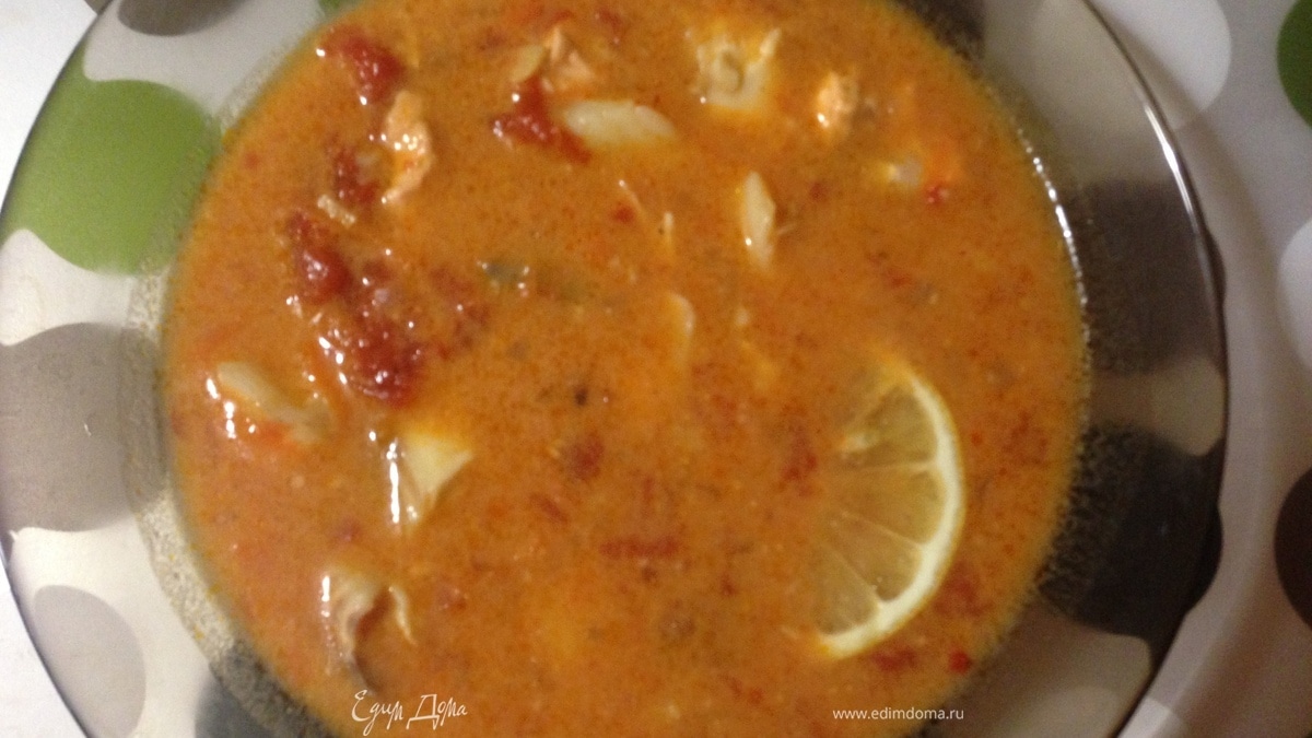 - Шаг 3Возвращаем в кастрюлю рыбный бульон, добавляем томатную смесь, доводим до кипения, добавляем рыбу и оставляем вариться на 10 минут.