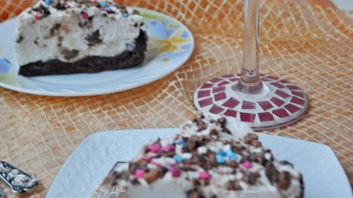 Верх украсить раскрошенным "Марсом" или по желанию,например разноцветной посыпкой для украшения тортов.Подавать нарезав на порционные куски.Приятного аппетита!