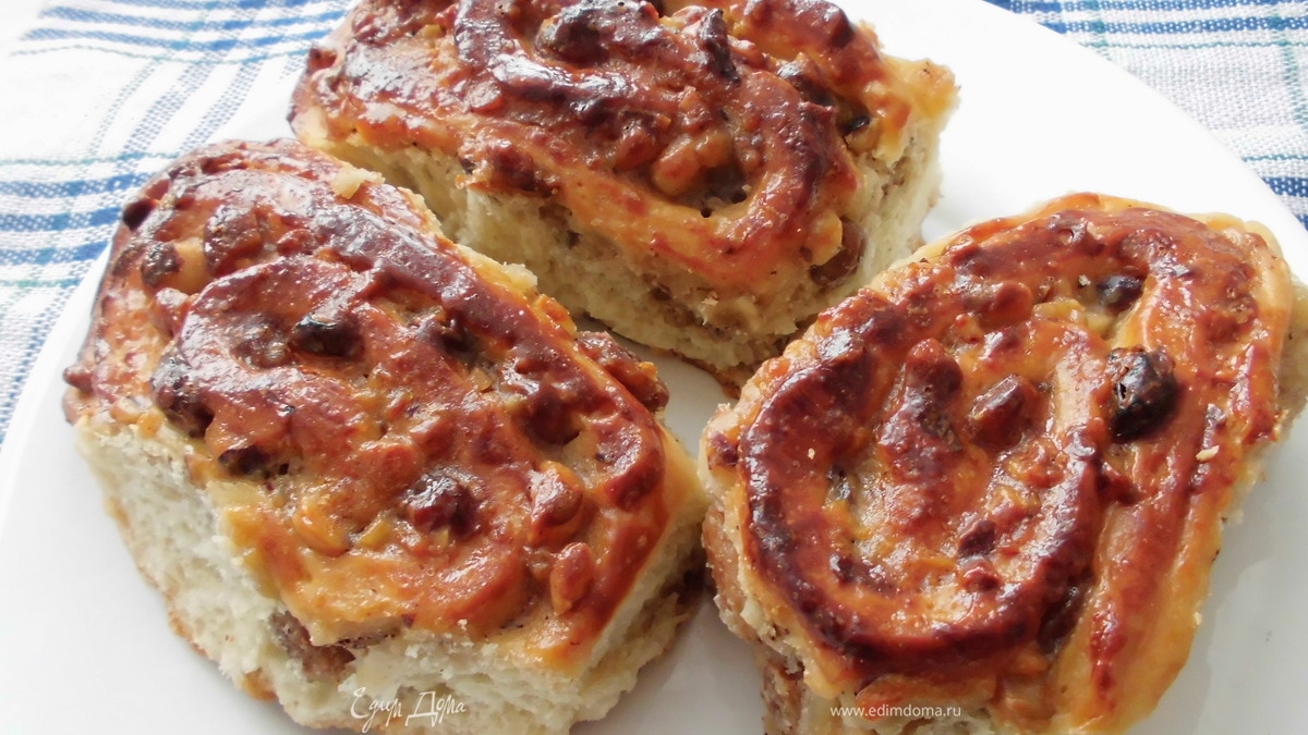 "Улитки" с корицей, изюмом и орешками